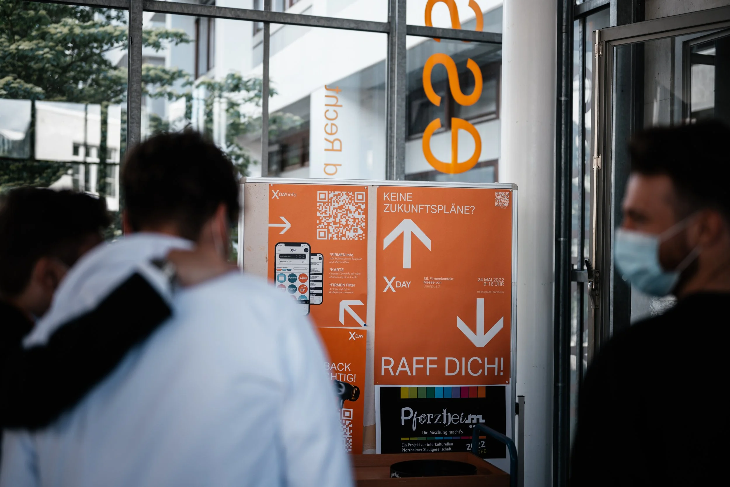 In summer 2022, I documented the X-Day career fair at Hochschule Pforzheim, organised by the student initiative Campus X. Students met companies from the region. I covered the event with both photo and video — capturing the atmosphere, the conversations, and the energy of the day.